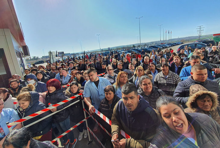 В ХАСКОВО: Стотици работници от „Язаки“ протестират, искат отпуск заради коронавируса (СНИМКИ)