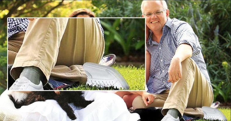 Снимката на Морисън, съпругата и двете им деца е трябвало да бъде новата официална фотография на личния сайт на премиера. От екипа на Морисън, водени от желанието да отстранят износените му бели спортни обувки и да ги заменят с нови, допускат гафа да го "сдобият" с два леви крака. Нескопосаният фотошоп масово е осмян в социалните мрежи.