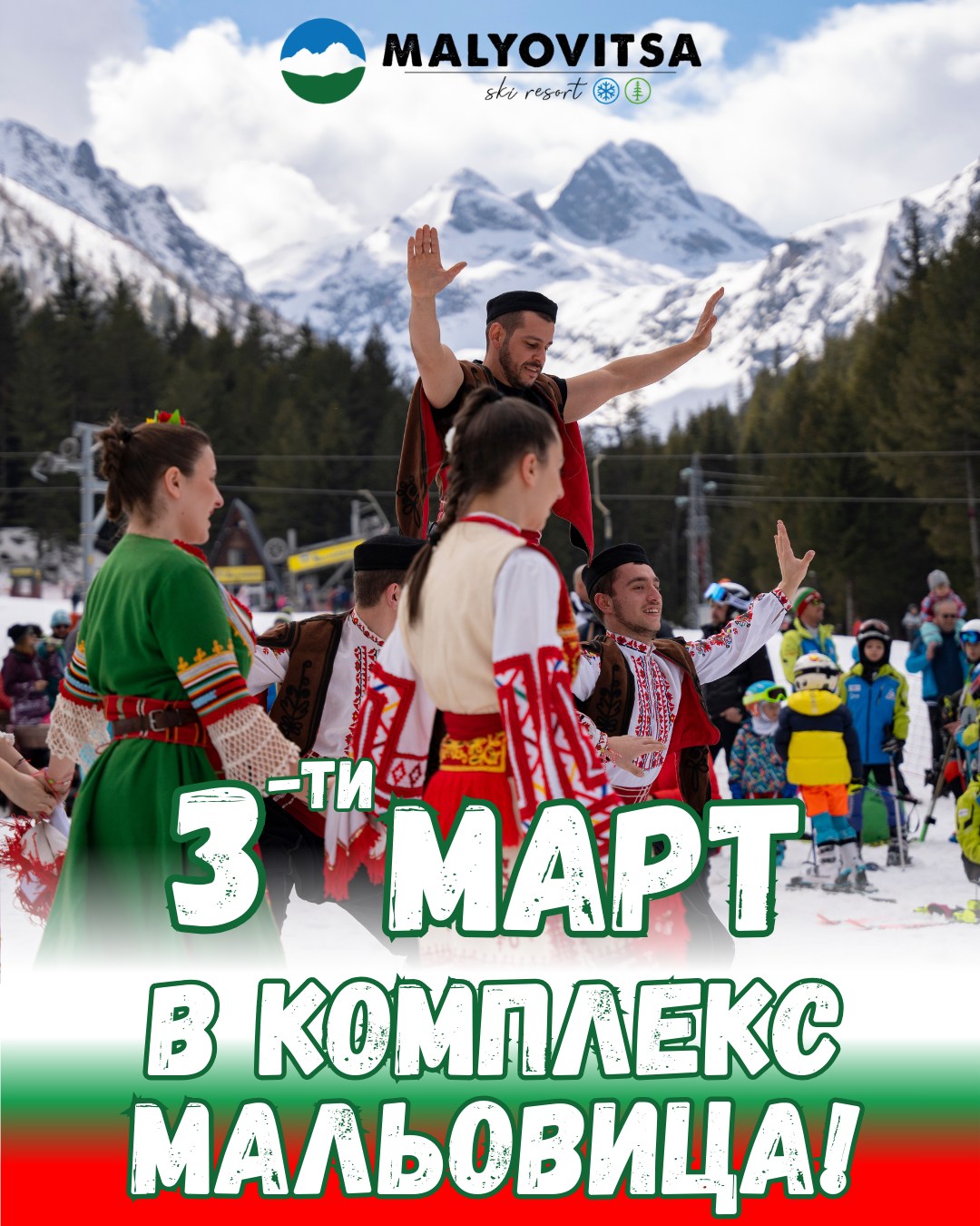 На 3 март навсякъде ще се веят национални флагове, а Гостите на курорта ще могат да се насладят на вкусните традиционни специалитети, предлагани в уютната атмосфера на ресторант Мальовица с невероятна панорамна гледка към Върха и околностите. Тази година началото на празника е в 11 часа.