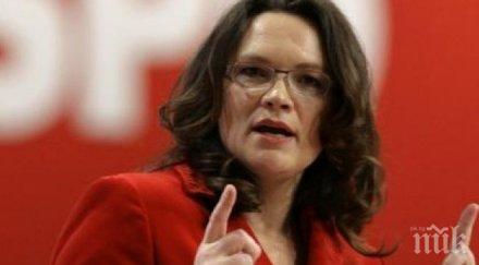 Лидерът на социалдемократите Андреа Налес заяви, че партията й иска до декември да бъде изяснено в каква посока ще продължи оглавяваната от канцлера Ангела Меркел коалиция и какви конкретни проекти ще предприеме.