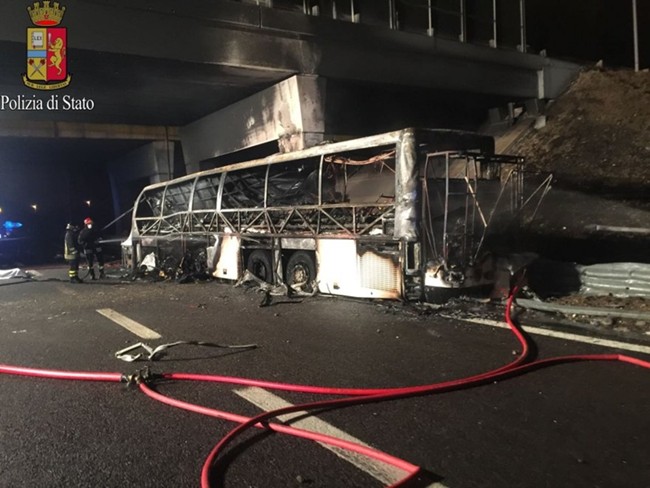 Според италиански медии учениците пътували към Будапеща след екскурзия във Франция. Автобусът се намирал на магистралата А4, близо до изхода за Верона Изток, когато започнал да залита встрани – така показват неговите видеокамери. След това превозното средство се блъснало в един от пилоните на огражденията и се подпалило.