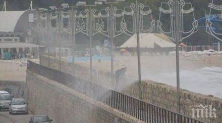 Причината за това са огромните вълни, които заливат пътното платно.