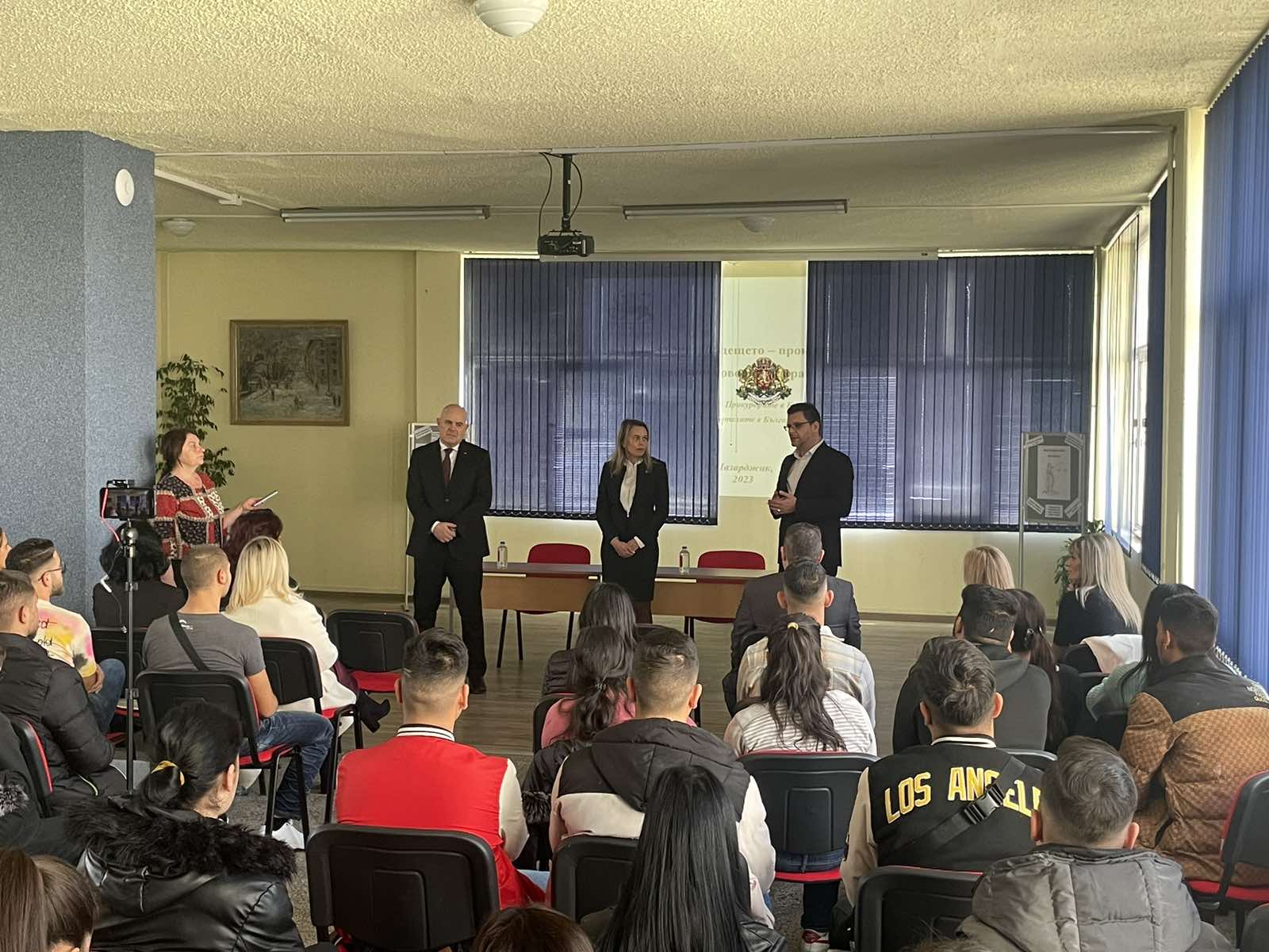 На срещата присъстваше десетокласничката Красимира Михайлова, ученичка в специалността „Технология на целулозата, хартията и опаковките“. Тя е един от победителите в конкурса за есе „Защо искам да съм прокурор за един ден“, организиран от Асоциацията на прокурорите в България и Британското посолство. „Впечатлена съм от разсъжденията в есето на Красимира и се надявам един ден тя да завърши право и да стане прокурор“, каза прокурор Златина Иванова.
