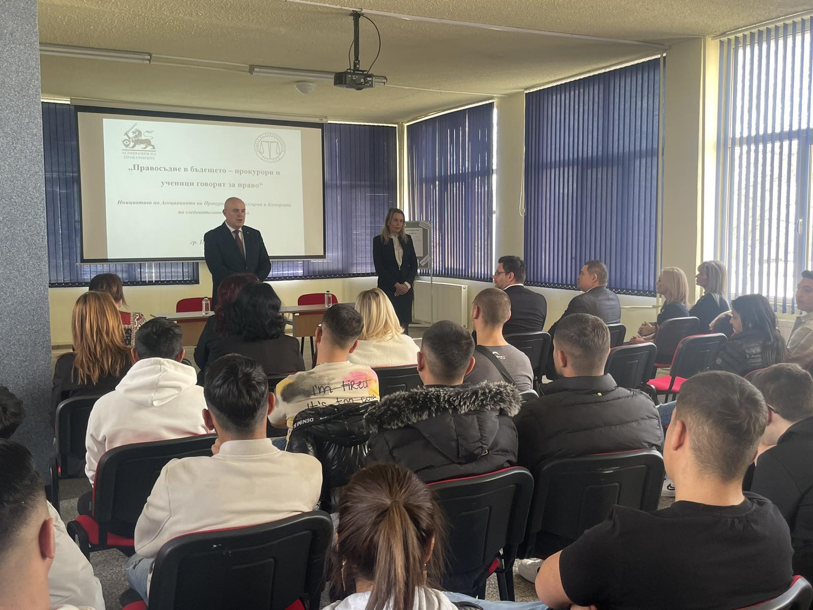 „За мен е чест да съм тук и ви благодаря за поканата“, обърна се към учениците Иван Гешев. Той обясни, че целта на срещата, която се провежда в рамките на инициативата „Правосъдие в бъдещето – прокурори и ученици говорят за право“ на Асоциацията на прокурорите и Камара на следователите в България, е младите хора да знаят правата си и активно да ги защитават.