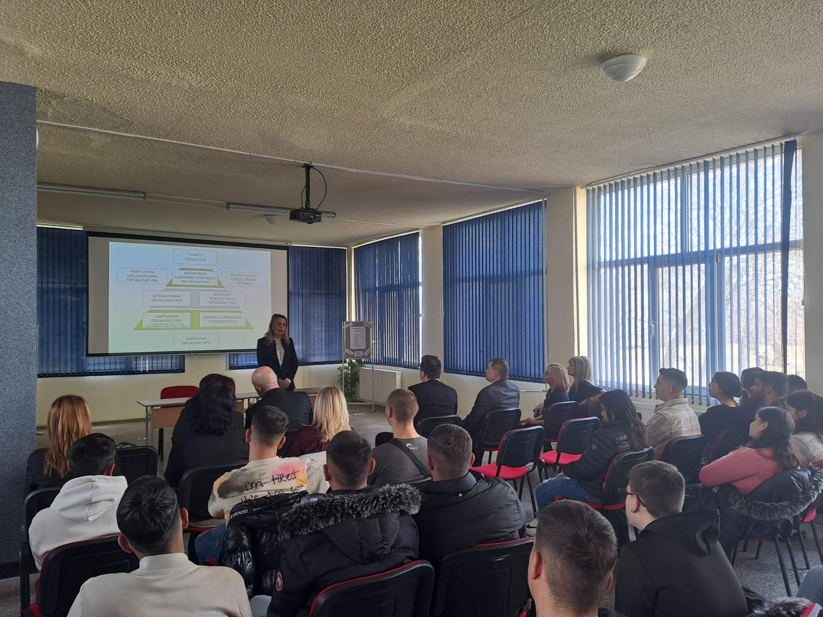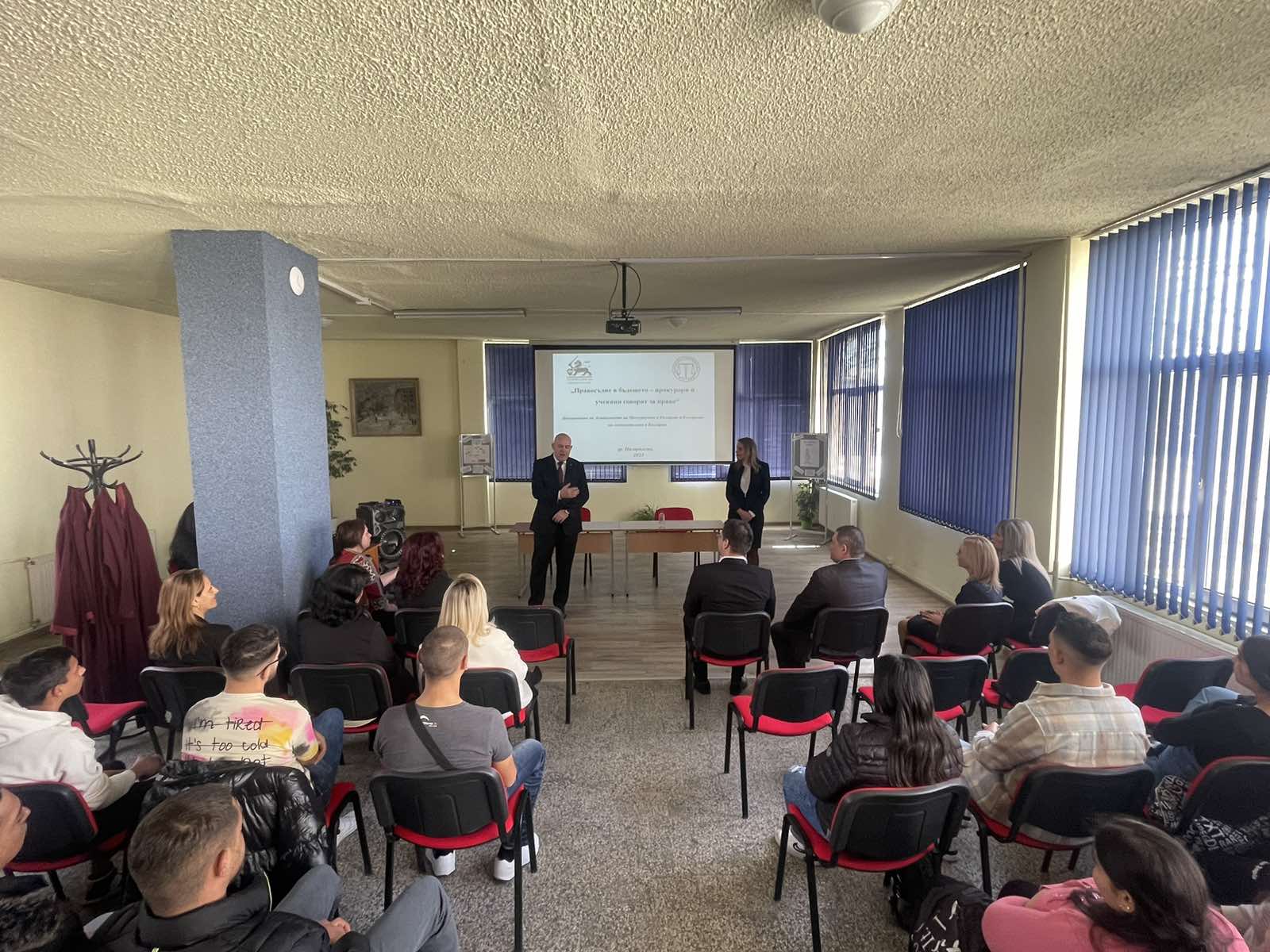 Прокурор Златина Иванова разясни на учениците в кои случаи може да се обръщат към прокуратурата, каква наказателната отговорност носят непълнолетните лица, които не спазват закона, и какъв е видът на наказанията за тях. „Прокурорската професия не е страшна. Ние сме тук, за да защитаваме вашите права и законни интереси“, каза Златина Иванова.