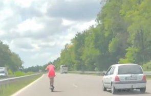 БЕЗУМИЕ! Жена хвърчи с тротинетка по автомагистрала "Хемус"