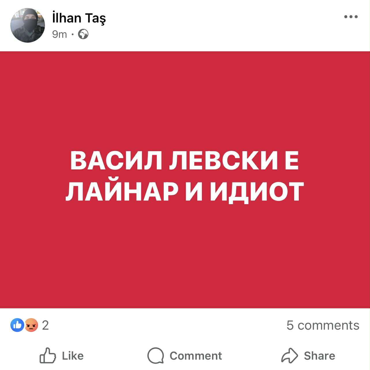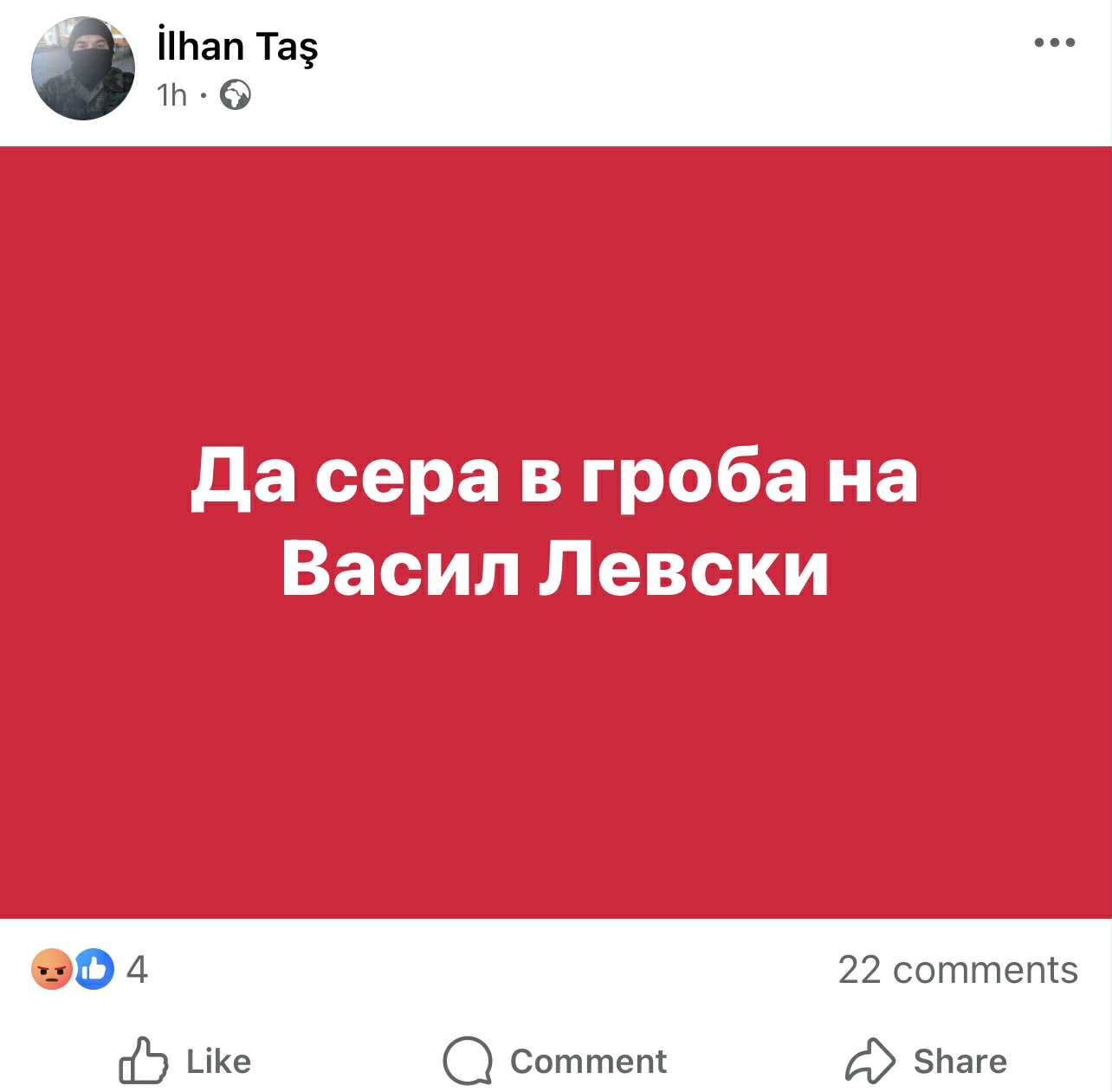 Част от постовете на провокатора Илхан Таш са свързани с Васил Левски, Иван Вазов, хановете Аспарух и Тервел, отбелязва "Телеграф".