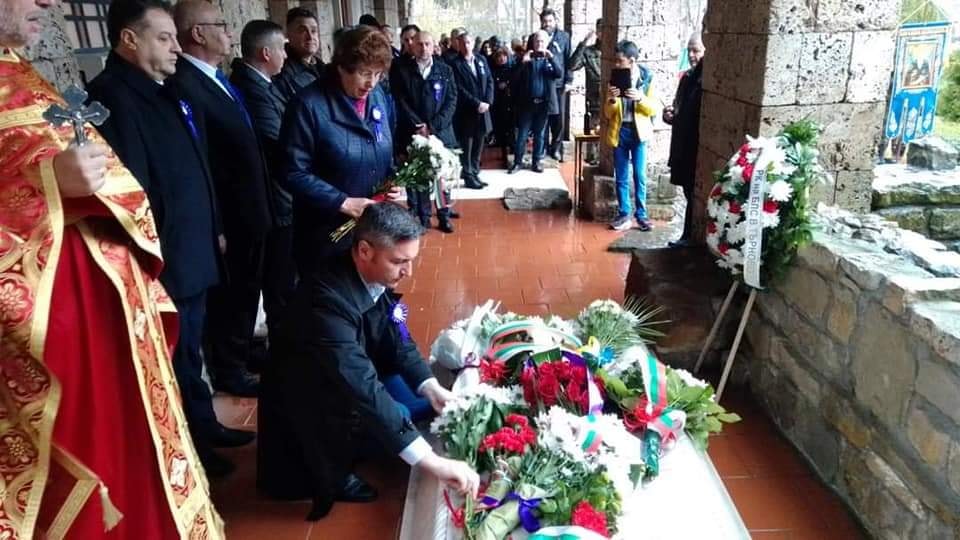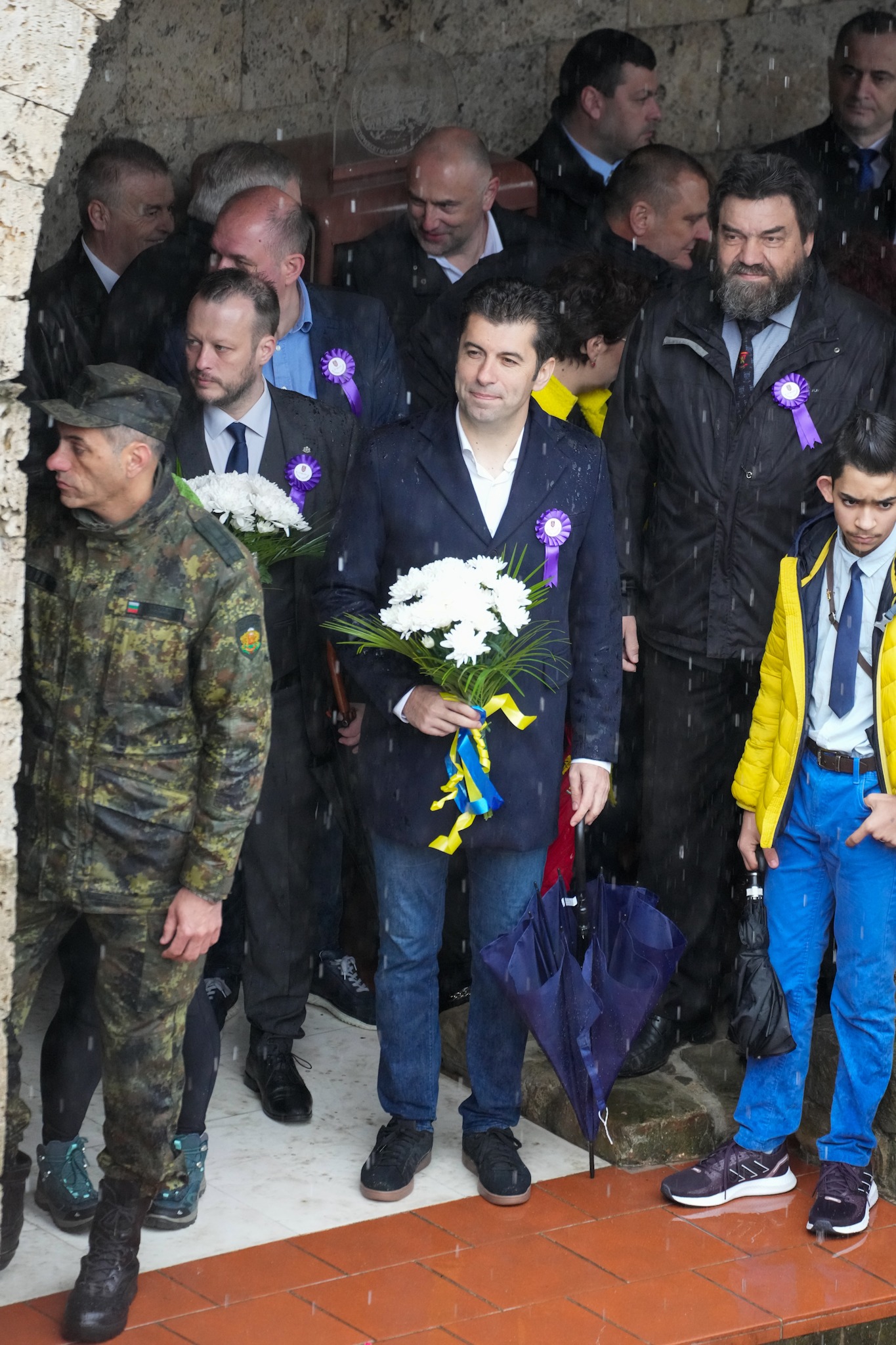 В църквата "Свети мъченици" под Царевец обаче Петков бе забелязан с букет цветя, украсен със сини и жълти панделки - цветовете на Украйна.