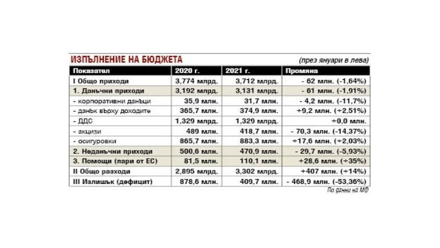 Даването на дoпълнителни 50 лв. към пенсиите всеки месец помага за пълненето на държавната хазна. Въпреки спада на икономиката, ръста на безработицата и това, че моловете и заведенията бяха затворени, приходите от ДДС от сделки в страната през януари достигат рекорд и надминават 1 млрд. лв. Те са със 72 млн. лв., или със 7,5% повече от същия месец на миналата година, показват данни на Министерството на финансите.