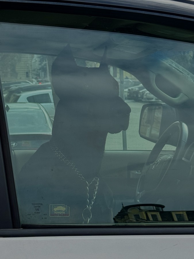 За да е напълно спокоен, че няма кой да му пипа возилото, Блатечки остави вътре голямото си куче. Домашният любимец кротко изчака своя стопанин, преди двамата да си тръгнат обратно към дома.