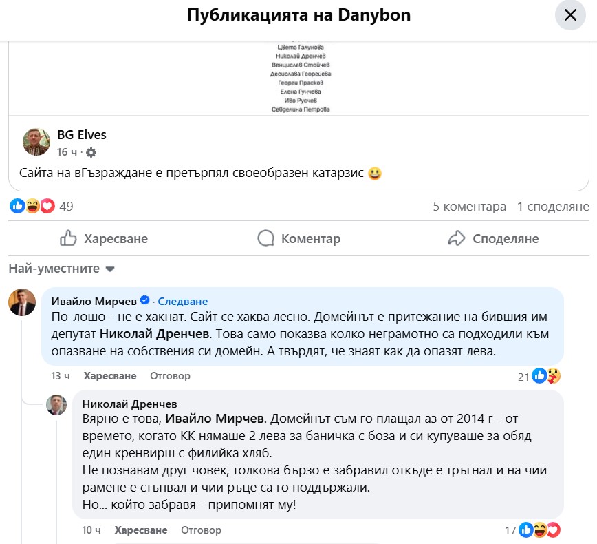 "Домейнът съм го плащал аз от 2014 г., от времето, когато КК нямаше 2 лева за баничка с боза и си купувашее за обяд един кренвирш с филийка хляб", потвърди Дренчев във Фейсбук.