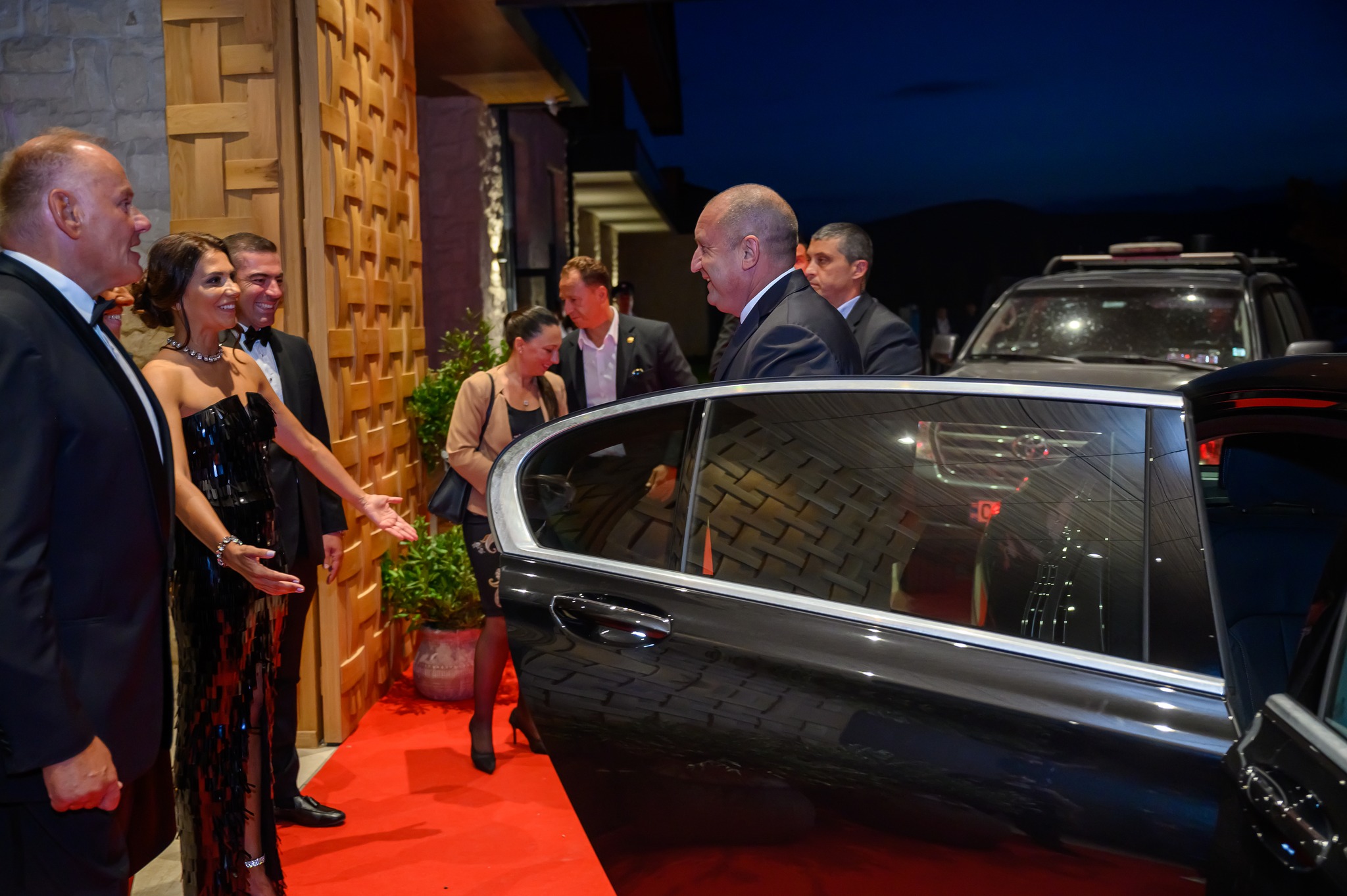 Събитието, на което са били поканени над 350 отбрани гости, се е състояло миналия месец, но снимките са публикувани по-късно и чак сега се завъртяха в социалната мрежа. От кадрите става ясно, че семейство Радеви са пристигнали в хотела с лимузина на президенството. Придружени са били от дежурния екип служители на НСО.