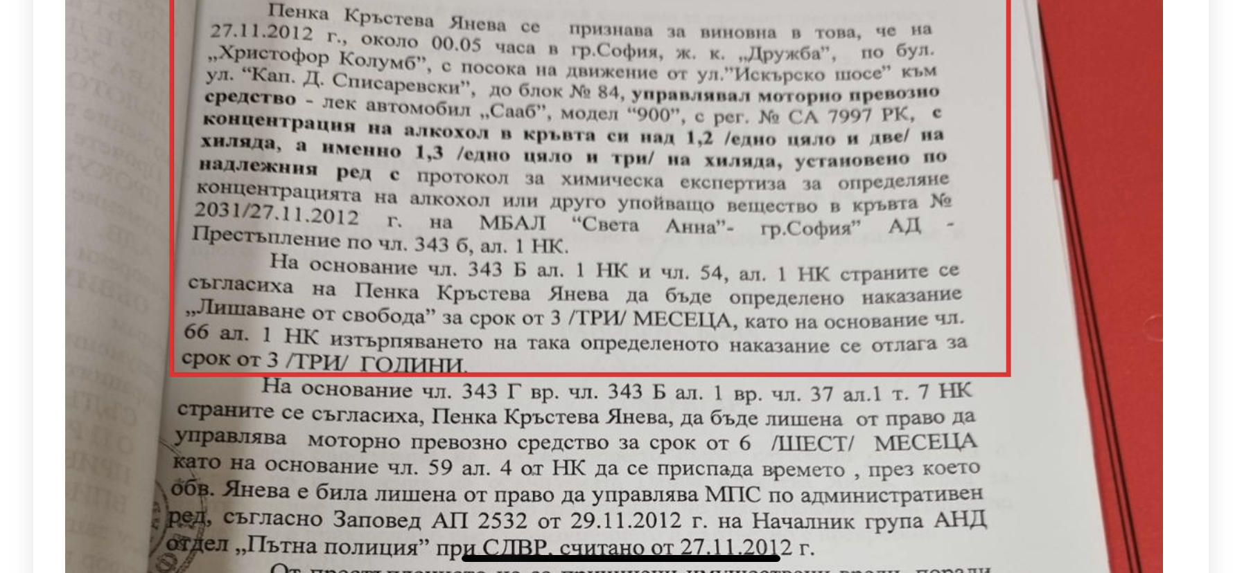 ГОРЕЩО В ПИК: Жената на Стефан Янев кара пияна и без книжка - полицаи арестували Пенка след буйство! Бизнесдамата с ключова роля в партийния проект на мъжа си (ДОКУМЕНТИ ОТ СЪДА И МВР)