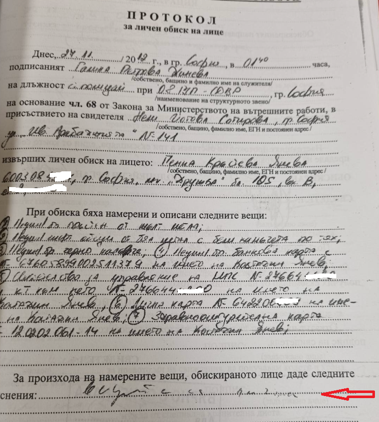 В крайна сметка в 02:10 часа тя е освободена от районното и са й върнати иззетите при обиска ключове, което се потвърждава и от полицаите.