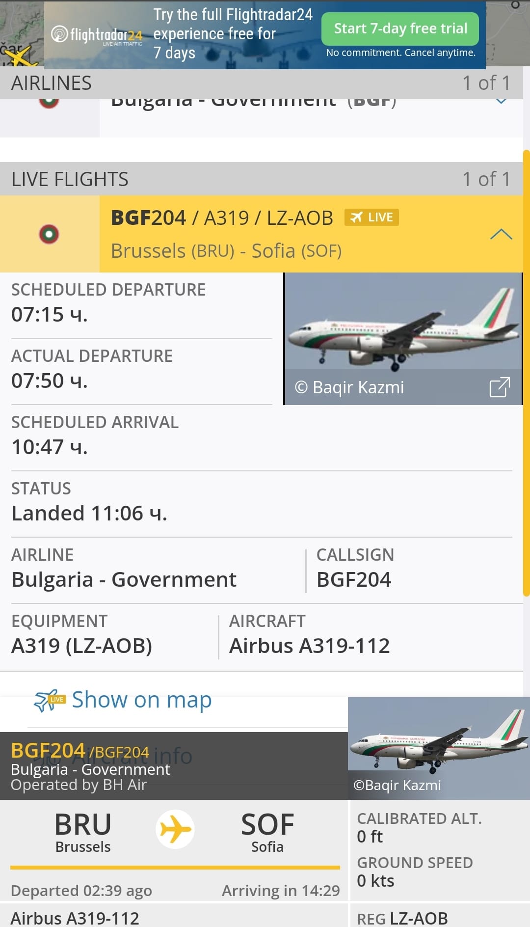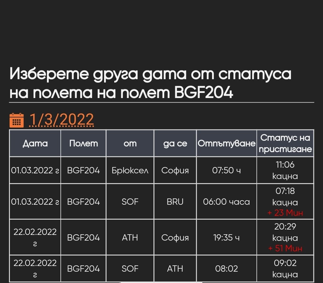 В 07.50 местно време "Еърбъс"-ът е тръгнал от Брюксел, и в 11.06 българско време е кацнал в София. Курсът до Брюксел и обратно е направен единствено заради кандидатът на правителството за военен министър, за да може той да присъства на дебатите и гласуването в парламента.
