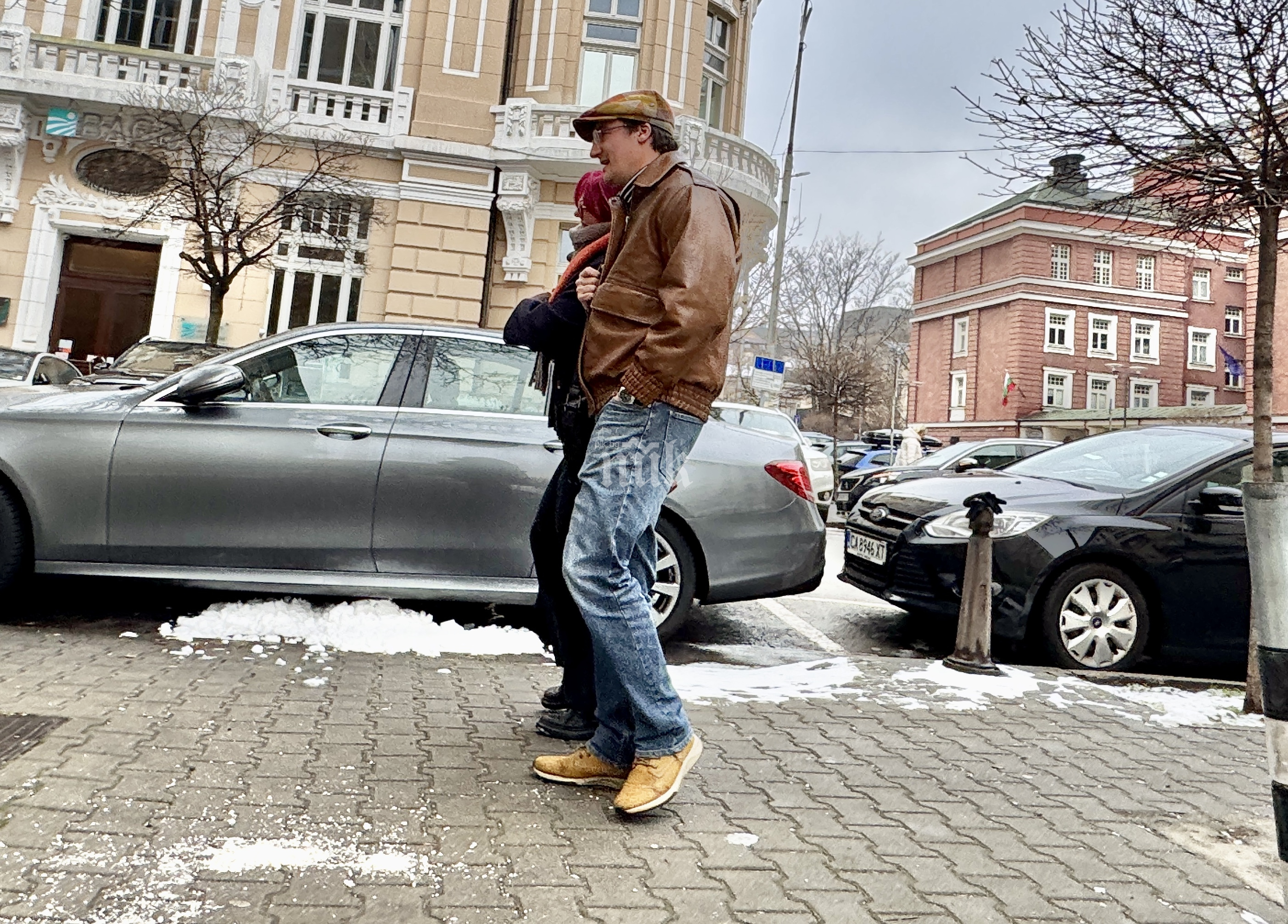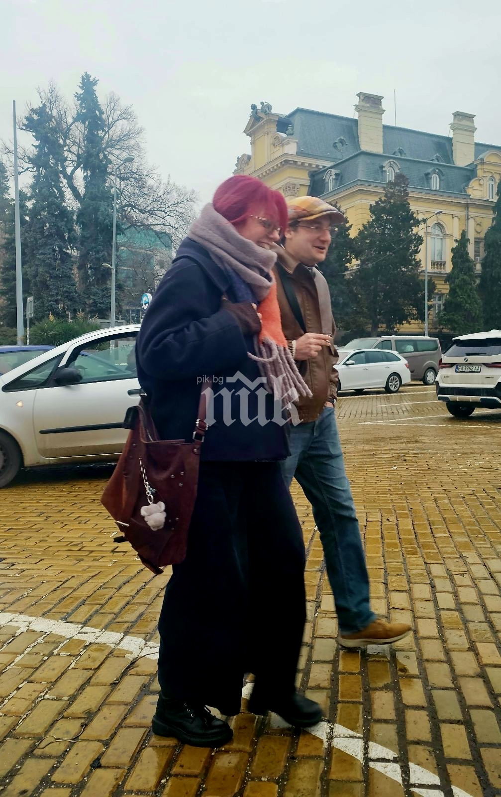 Зарков и съпругата му не останаха незабелязани заради екстравагантния си външен вид. Ирина прикова погледите с прическата си заради боядисаната в ярко цикламено коса, докато бившият президентски съветник се разхождаше неглиже - с кафяво кожено яке, маратонки, дънки и шарен каскет.