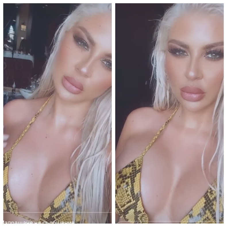 Кадрите все още или не са заснети, или не са ретуширани, но въпреки това под жаркото слънце над Дубай Андреа побърза да се разхвърля по бански, за да покаже новия си силикон.