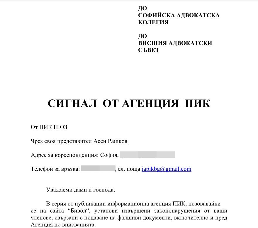 Към сигнала си агенция ПИК изпраща и следните въпроси до Софийската адвокатска колегия: