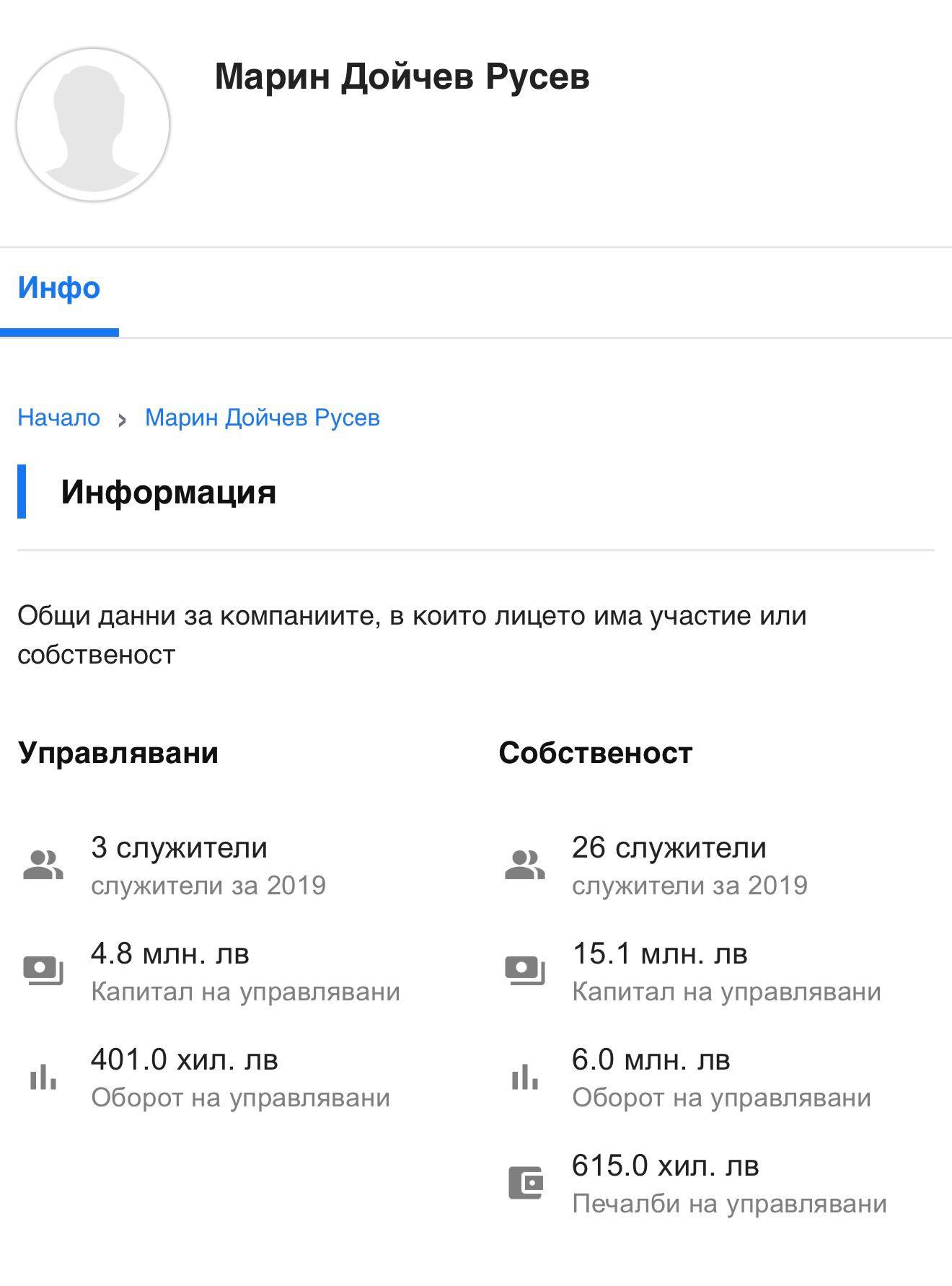 Водещата на ПИК TV научи, че мажоритарният собственик Марин Дойчев Русев е смятан за най-големият схемаджия в държавата, контрабандист на цигари над равнището на публично обявения за Цар на контрабандата с цигари Никола Николов-Паскал, който е обвиняем по мега-делото, популярно като “Пудели и пачки”.