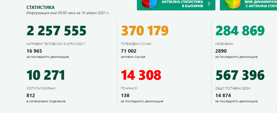 14 308 са починалите с коронавирус до момента в страната. 138 са новите смъртни случаи за денонощието.