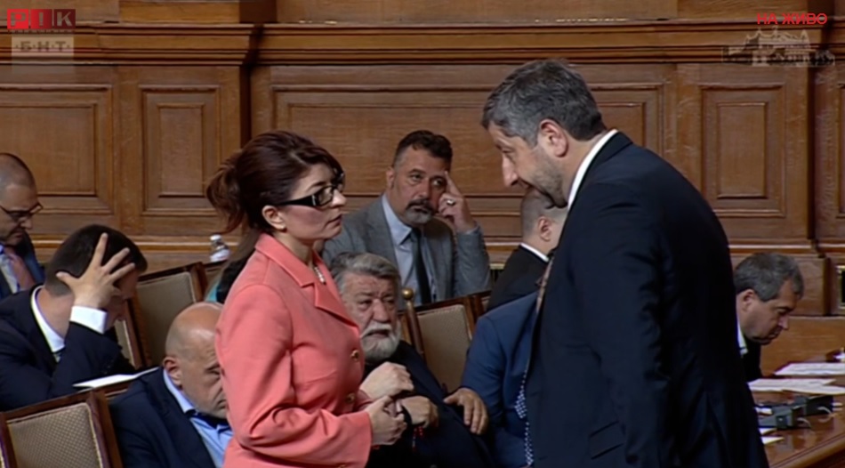 Докато в същото време колегата му в ПП-ДБ Кирил Петков седеше самотно на мястото си, а погледът му блуждаеше.