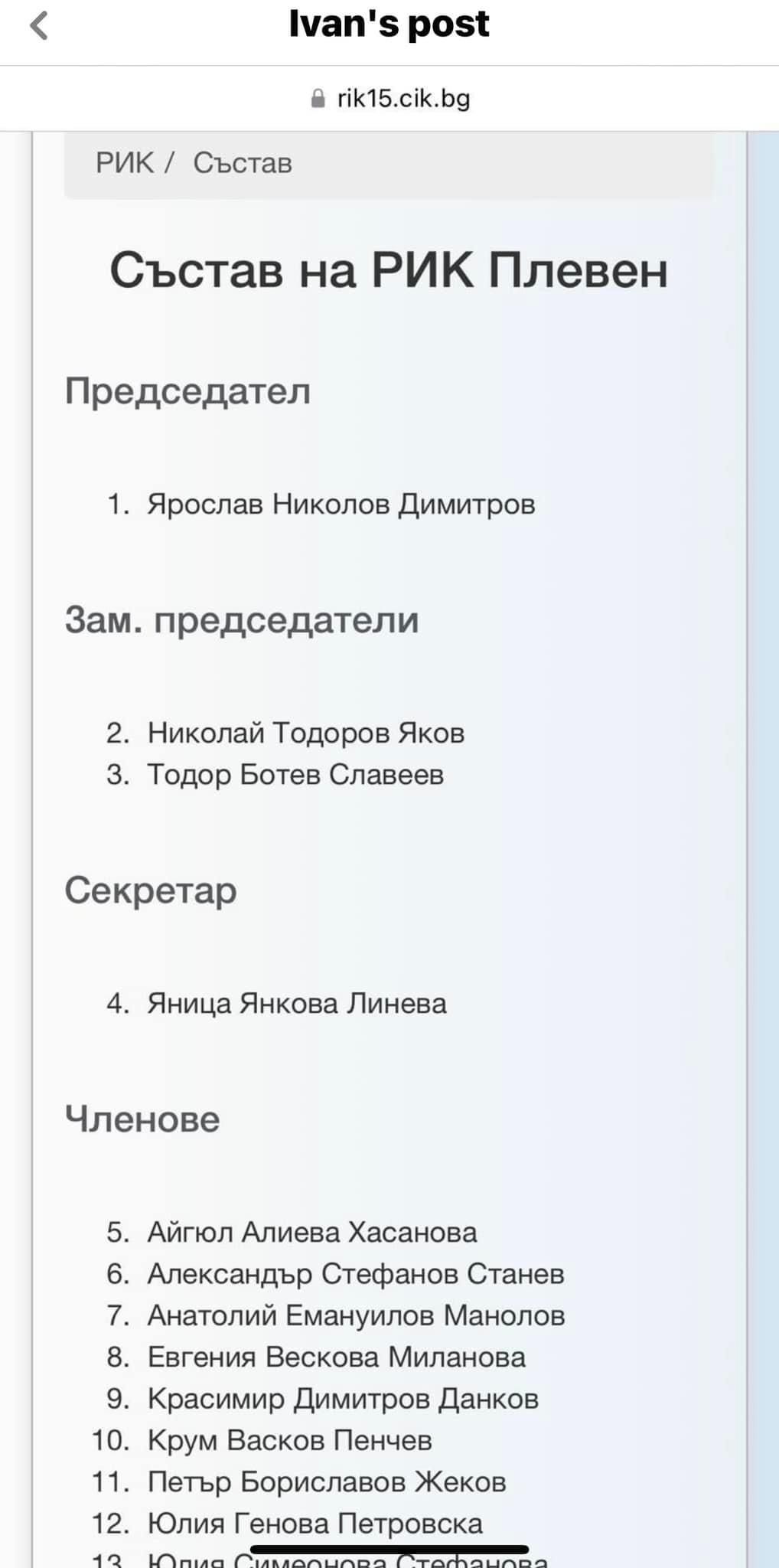Гражданинът Иван Иванов от Плевен, обърна внимание във Фейсбук на следното нарушение: Александър Станев е член на Районната избирателна комисия и не може да участва в агитация на която и да било партия. Той получава от държавата за 50 дни работа около 2 000 лева.
