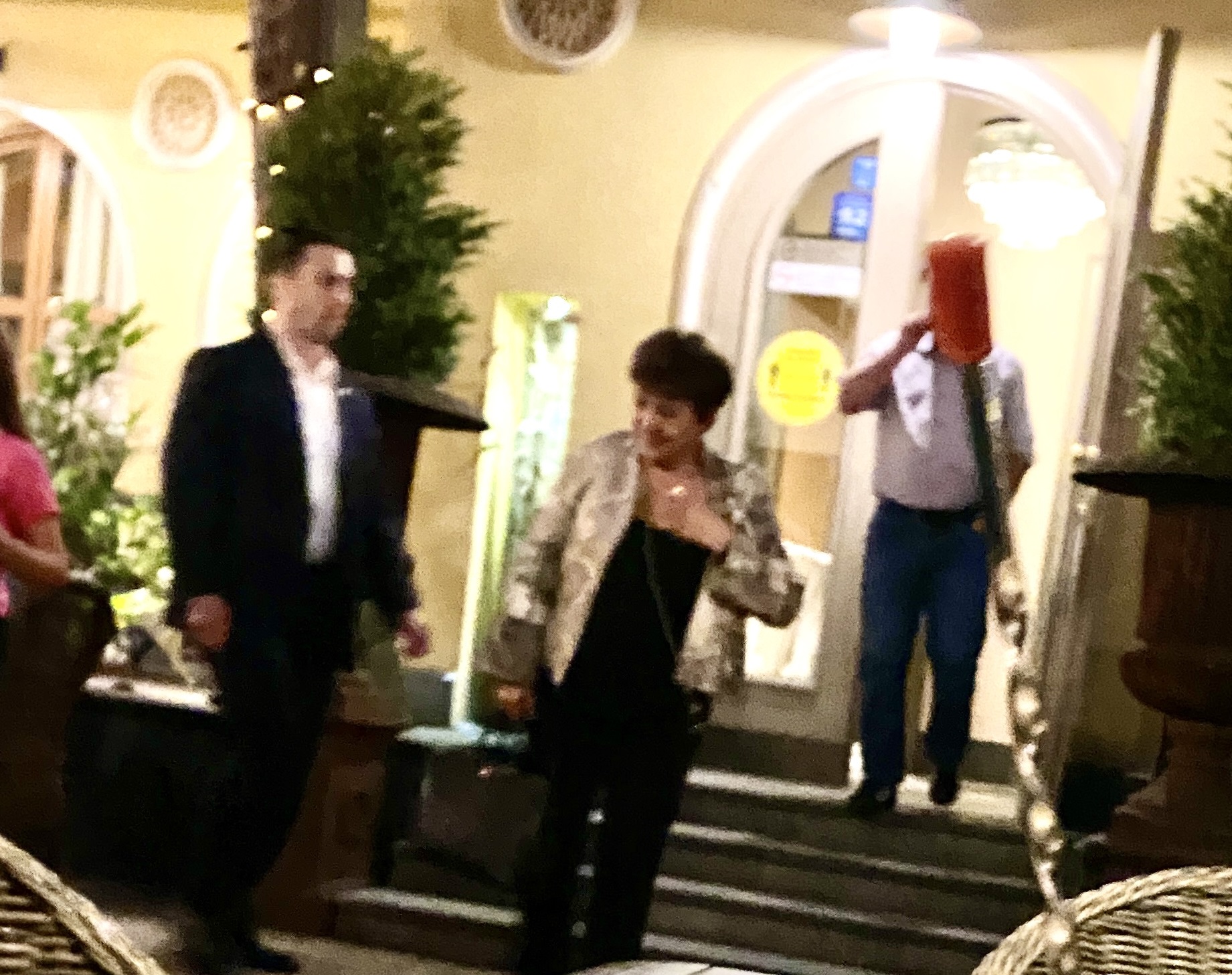 Кристалина Георгиева бе придружена от семейни приятели с деца, с които цяла вечер сладко си говори. Впечатление направи на тръгване, че шефката на МВФ дори в родината си е охранявана и се движеше с гардове и ескорт.