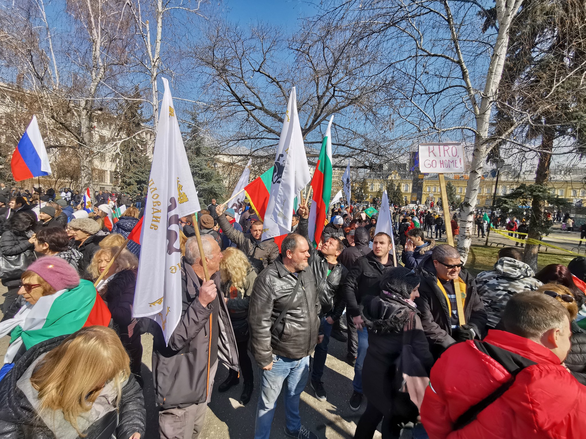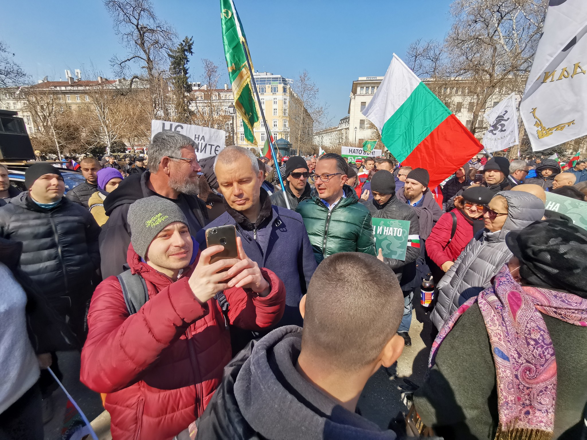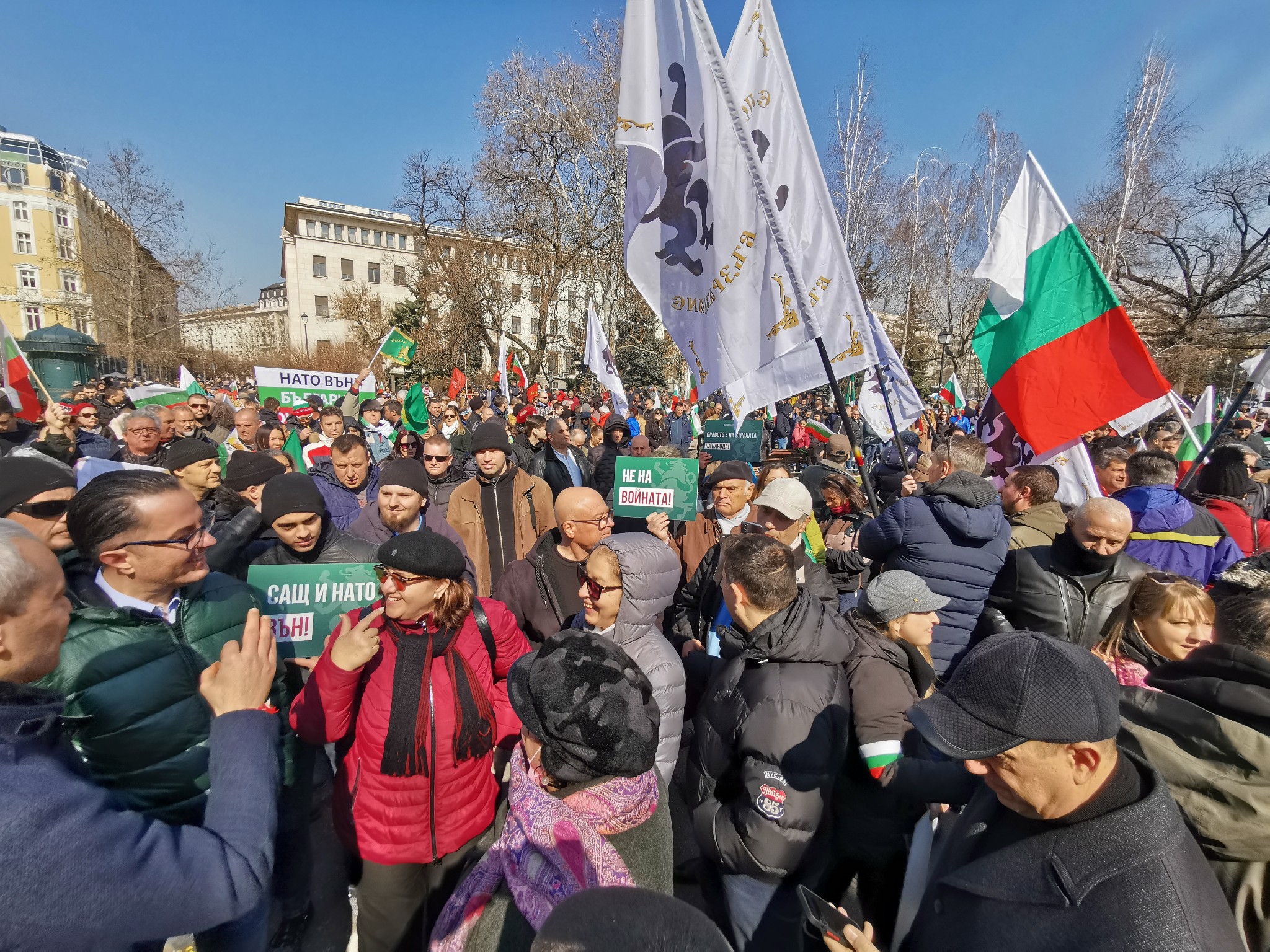 "Никога не трябва да бъде управлявана повече България, които поставят чуждите интереси над националните. България е държавата на българите. Така е било. Така е. И така ще бъде. Да живее България!", призова лидерът на "Възраждане", а протестиращите му отговориха с възгласи: " НАТО вън!".