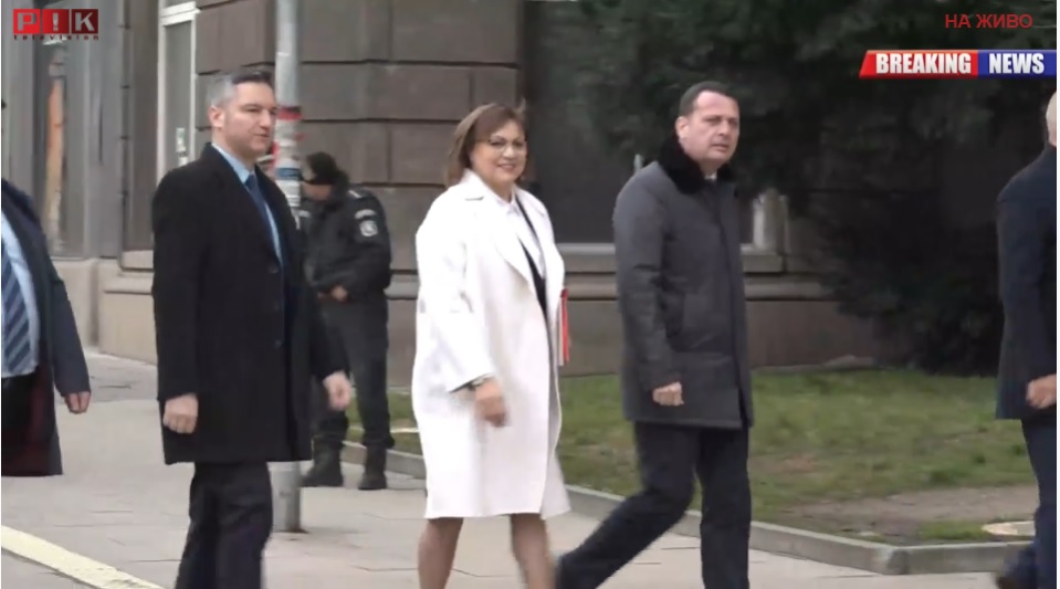 Пременена с бяло палтенце, Нинова пристигна засмяна в президентството, придружена от Кристиан Вигенин, Георги Свиленски, Иван Ченчев и Атанас Зафиров.