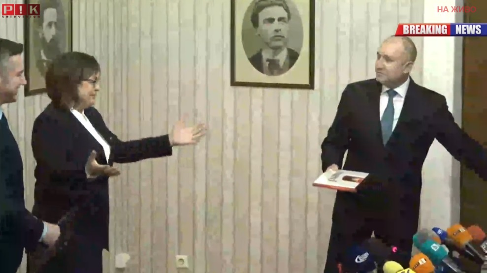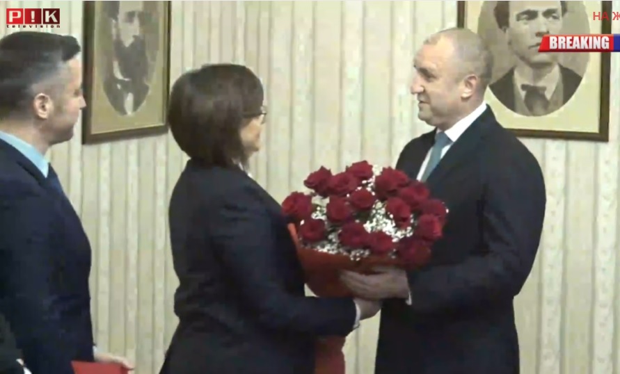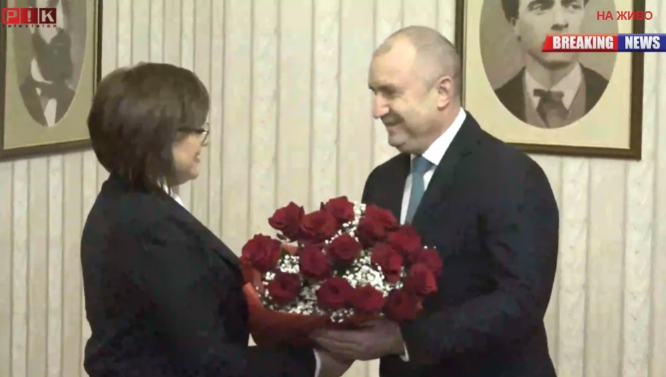 ГОРЕЩО В ПИК TV! Радев връчи третия мандат на Нинова заедно с букет червени рози за рождения й ден! Соцлидерката го черпи с бонбони (СНИМКИ/ОБНОВЕНА)