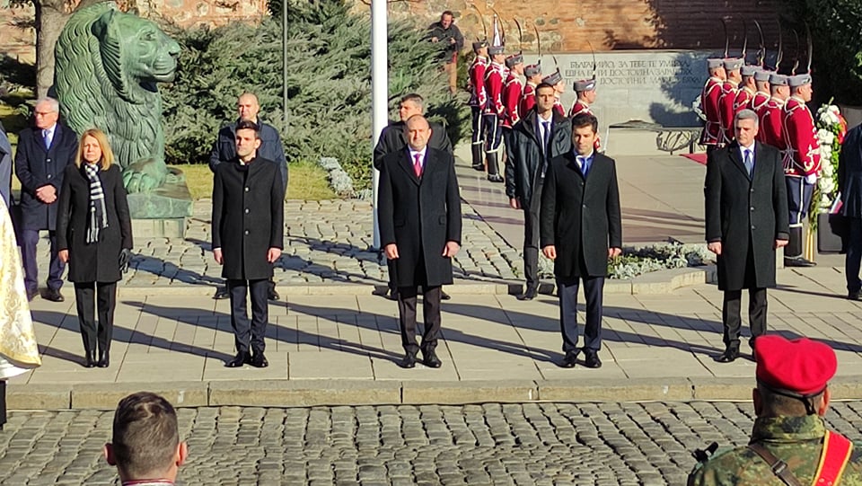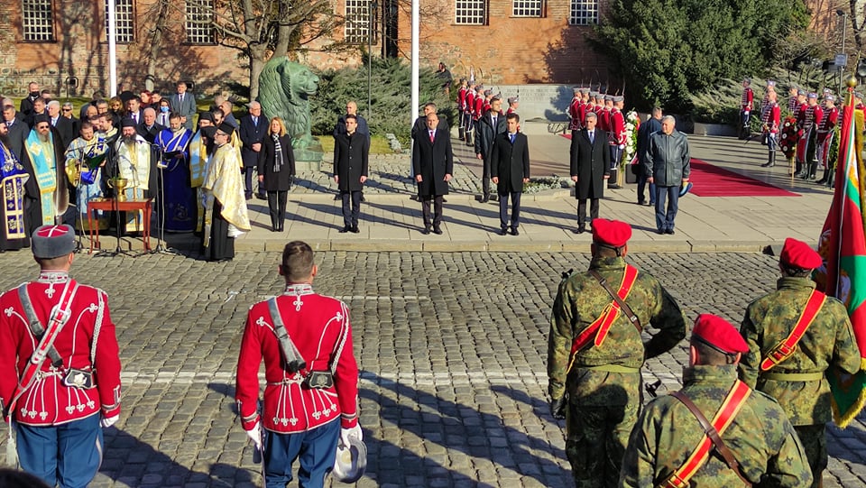 Президентът Румен Радев, военният министър Стефан Янев, председателят на парламента Никола Минчев и шефът на отбраната адмирал Емил Ефтимов взеха участие в ритуала по водосвета на бойните знамена и знамената светини на Българската армия, който традиционно се извършва на Богоявление.