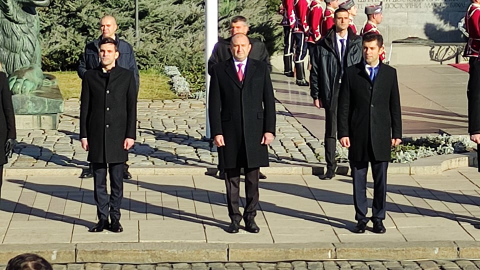След края на церемонията президентът Румен Радев говори пред журналистите по актуални теми, но отказа да отговори на въпроси за кризите в страната и оценката му за първите седмици работа на редовното правителство.