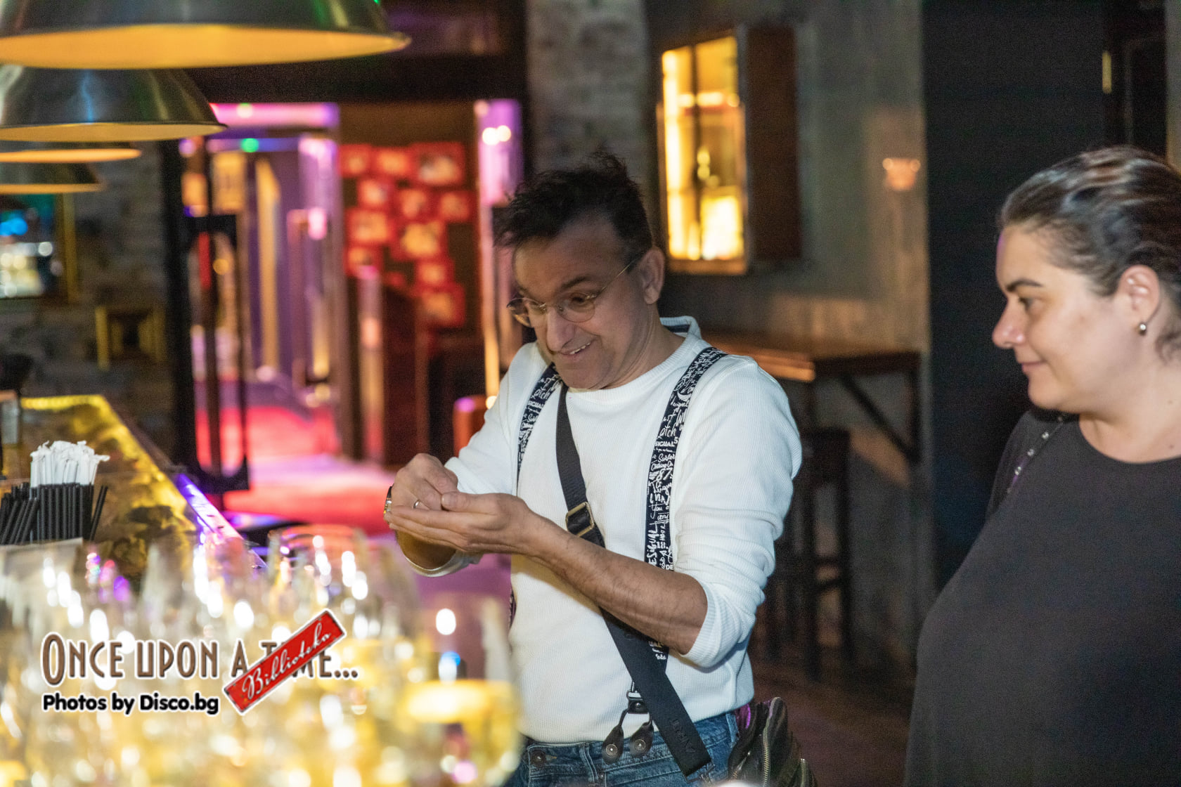 На купона комикът доведе и жена си Ана Вичева. Ако се съди по държанието им, съпрузите изглежда се чувстват като у дома си в заведението на шефовете си. Клубният фотограф успя да ги щракне да се натискат без грам притеснение на сепарето, на което компания им правеха още Геро и жена му, Джуди Халваджиян, Юлиан Вергов, Румен Угрински... Нощният живот сигурно много липсна семейството, тъй като те се държаха като прясно влюбени тийнейджъри - то не бяха флиртове, прегръдки, закачливи погледи...