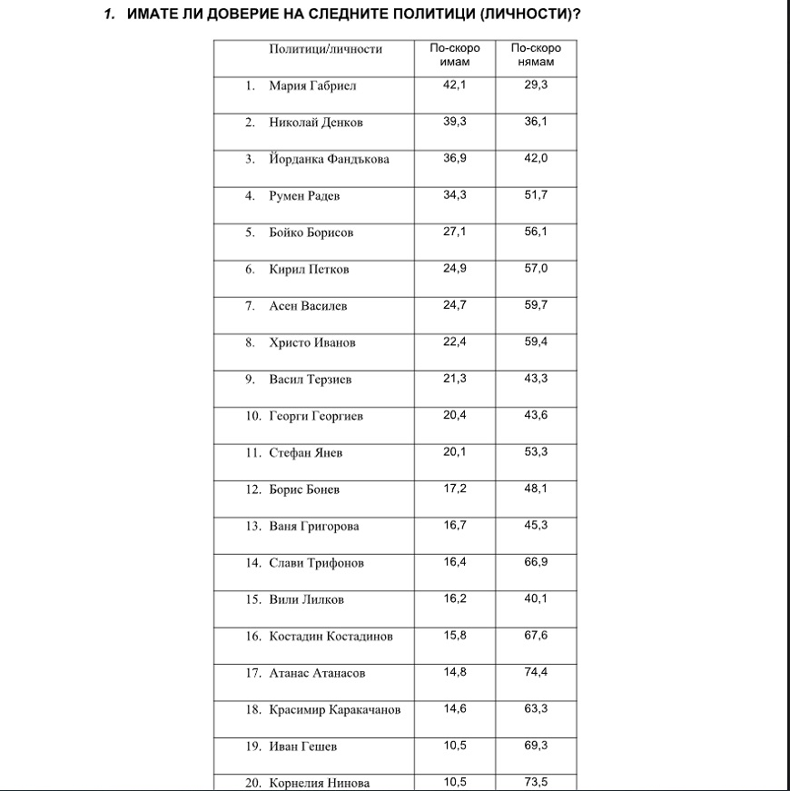 "Резултатът на все още неродената партия на Гешев в София - 7%, е по-висок, отколкото в страната, където 6,3% са заявили готовност да гласуват за нея. В последните десет дни регистрираме покачване на одобрението към бившия главен прокурор и неговата формация", коментира социологът Юлий Павлов.