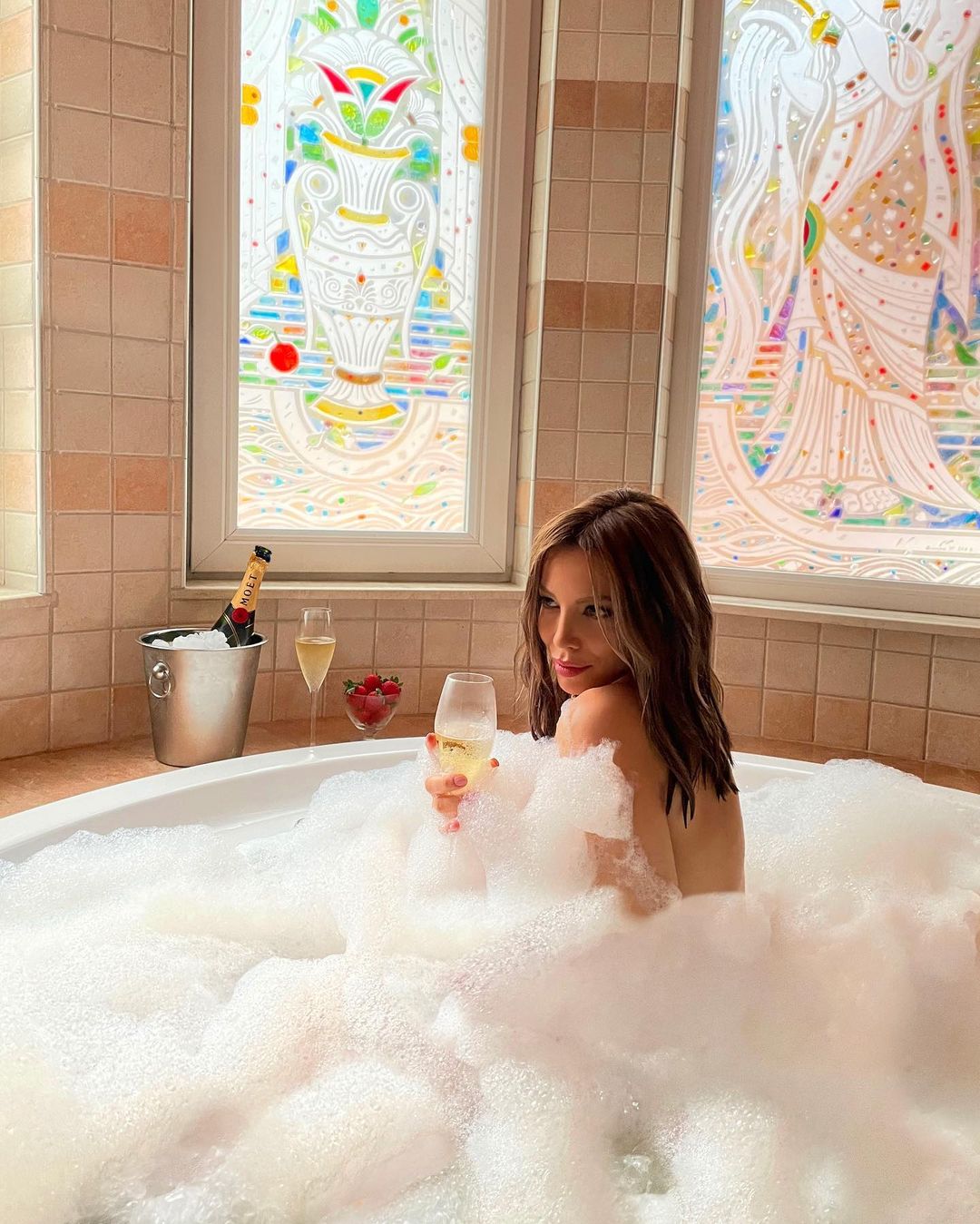 В социалните мрежи изпълнителката на "Пайнер" не пропуска възможност да качи кадър от почивката си. Тя се похвали, че релаксира в сауна, а по-късно дори се показа и от ваната, като не оставя много на въображението.
