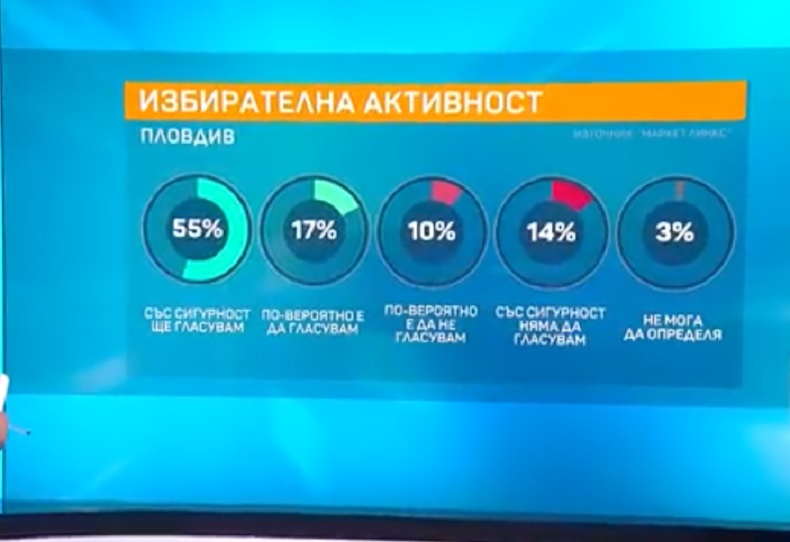 "Около 55% се очаква да бъде избирателната активност на местните избори в Пловдив на 27 октомври. Пловдив много се разви през последните години, кандидатите са много на брой", разкри пред Би Ти Ви Добромир Живков от "Маркет линкс".