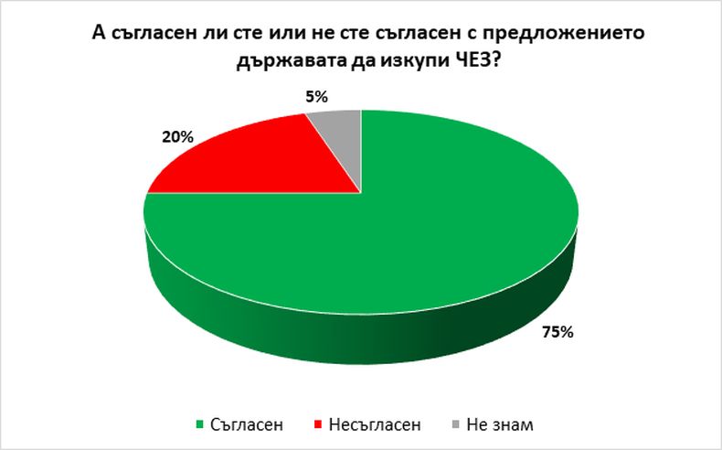 Огромната част от българите са против случващото се с ЧЕЗ и искат по-ефективна намеса на държавата. Общественият отзвук е мащабен. Българите не възприемат добре действията на властта до този момент.