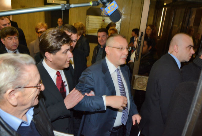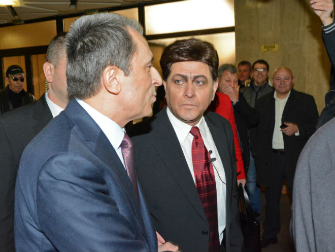 Премиерът Орешарски не измени на равно-безучастния си стил, а лидерът на БСП Сергей Станишев не успя да запази пълно душевно равновесие и се отдели от сценката с думите "Моля, не ме пипайте" към "Първанов", който свойски го беше хванал под ръка, коментира "Булфото".