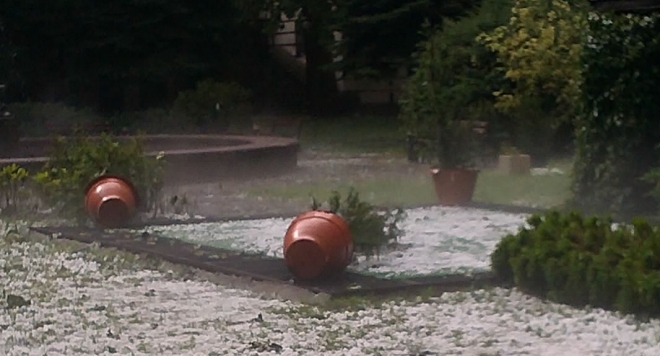 Бели преспи по плочника имаше вчера, тук беше страшно, казаха от персонала на МС. Служители свидетелстваха, че когато големите като яйца ледени парчета падали във фонтана на двора, избликвали струи като от водоскок.