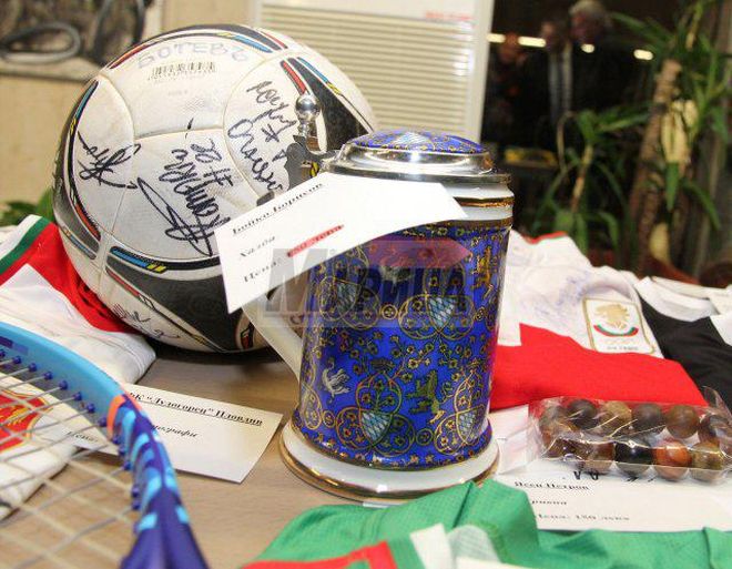 За същата сума от 150 лева пък топката с автографи, предоставена от ФК „Лудогорец”, стана притежание на бизнесмена Димитър Георгиев. Коженото кълбо е от последния мач на разградчани с пловдивския „Ботев”, игран на Колежа.