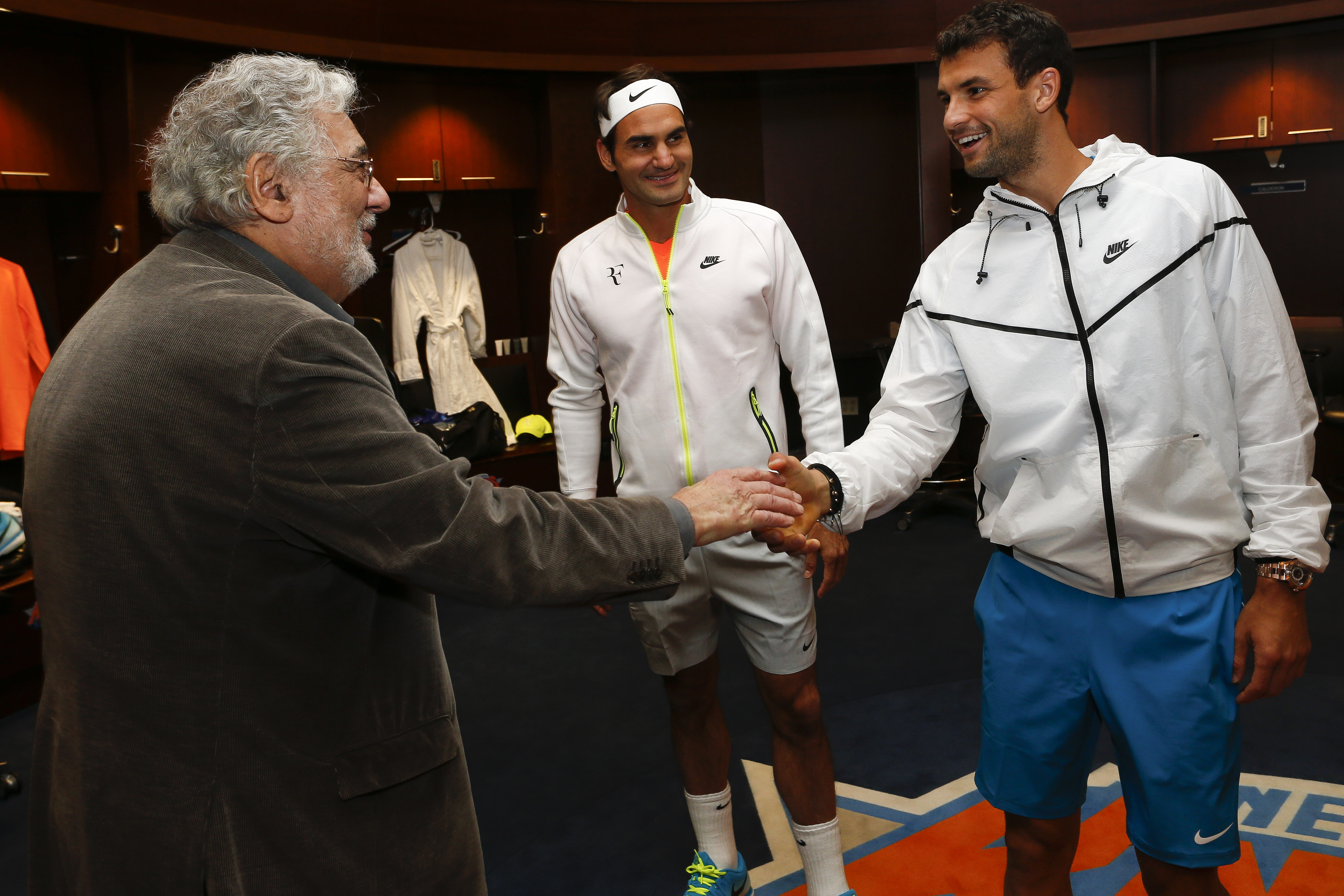 Първата ни ракета Григор Димитров се поздрави с първа победа над идола си Роджър Федерер, макар и в демонстративен мач. Гришо спечели шоуто в зала "Медисън Скуеър Гардън" в Ню Йорк с 6:2, 1:6, 7:5. В залата да подкрепят Григор бяха неговите родители, а сред зрителите се забелязваше и големия тенор Пласидо Доминго, който използва случая, за да се запознае лично с двамата тенисисти.