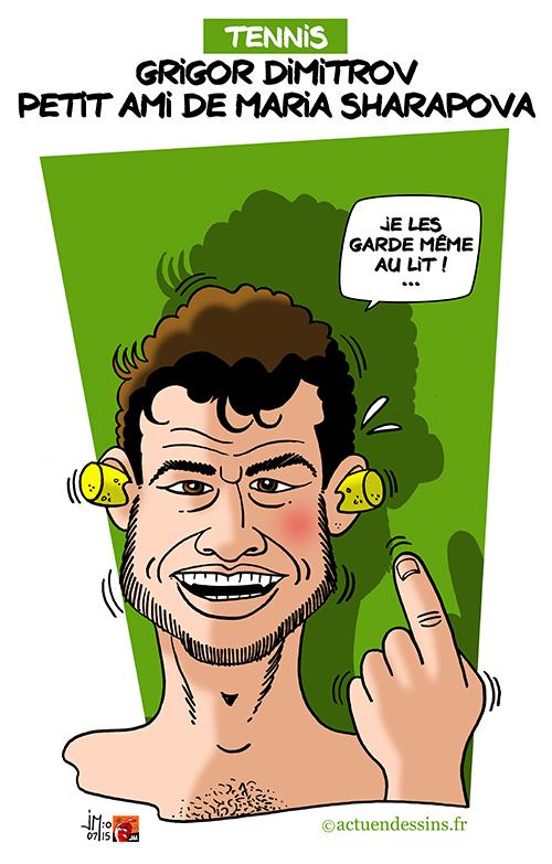 Руската звезда е известна със специфичното си поведение по време на двубоите, в които играе, а силата на виковете и бе измерена до фантастичните 105 децибела. Според карикатурист от Франция обаче това ни най-малко не притеснява Димитров. Ето и как той е намерил начин да загърби шумната Маша.