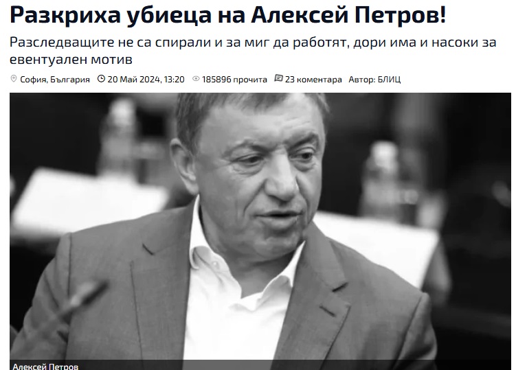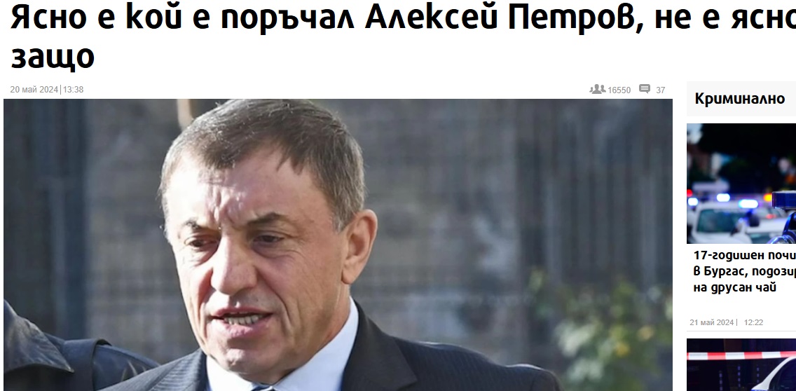 Макар да минаха повече от 9 месеца от убийството на бизнесмена Алексей Петров, темата около това кой го уби и защо го е поръчал продължава да е водеща у нас. Вчера редица медии, позовавайки се на вестник "България Днес", разпространиха поредния кьорфишек около разследването - а именно, че има напредък и че е установен поръчителят.