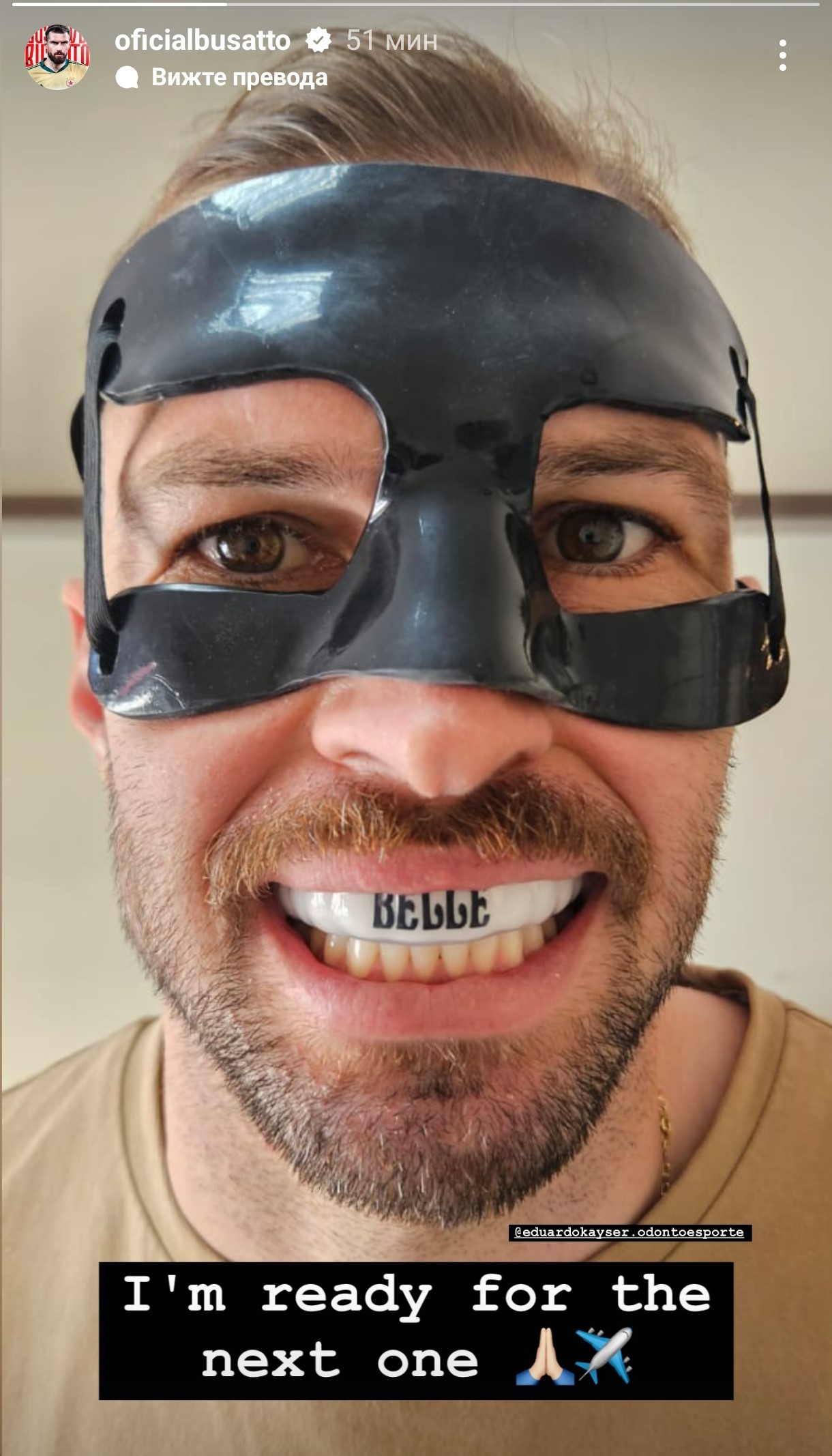 В социалните мрежи Бусато публикува снимка с предпазна маска и протектор за зъби, което показва сериозността на травмата. Въпреки това, бразилският страж демонстрира оптимизъм и желание за завръщане, като написа: “Готов съм за следващия“.