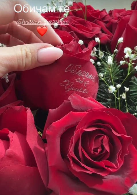 Върху някои от розите има и любовно обяснение: "Обичам те. Хриси".