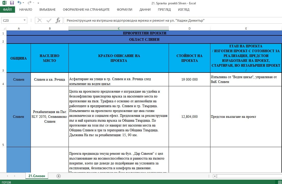 Осигурени над 4,5 млн. лв. за реконструкция на вътрешната водопроводна мрежа на село Гавраилово, над 11,5 млн. лв. за реконструкция на водоснабдителната и вътрешна водопроводна мрежа на село Малко село и в село Градец и ул. „Хаджи Димитър“ в Сливен.