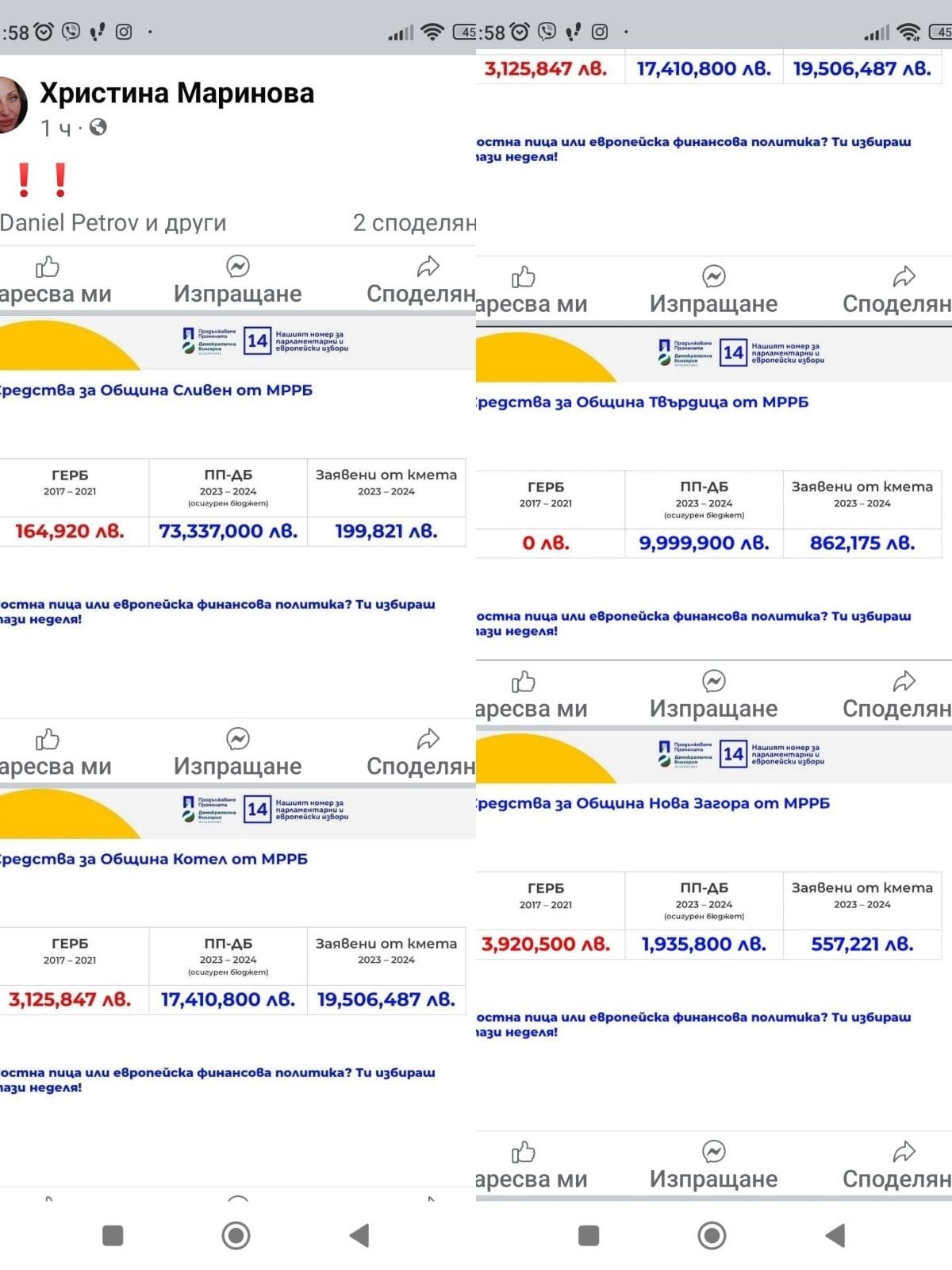 Първа лъжа – според ППДБ кметът на Сливен е поискал 199 821 лв, но ИСТИНАТА е, че всъщност сумата е 62 703 000 лв за 7 мащабни проекта, които са част от поетите ангажименти по време на предизборната кампания за местни избори 2023 г. - асфалтиране на кв. „Речица“, ремонт на Колодрума, облагородяване на квартали, изграждане и ремонт на канализация и т.н.