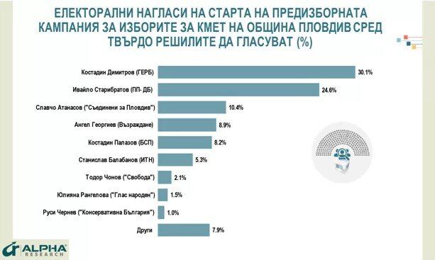 Разместените данни на "Маркет линкс" за надпреварата в Пловдив.