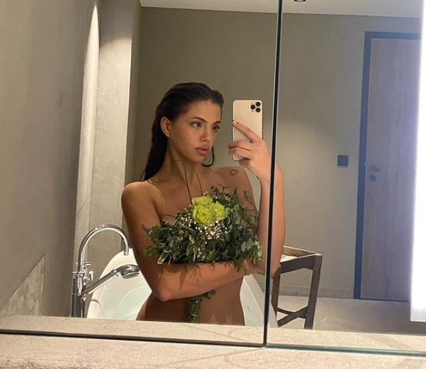 Изкусителната брюнетка сподели апетитни кадри, на които позира гола в банята, а единственото, което прикрива пищните ѝ извивки са живи цветя. Прикривайки леко гръдната си обиколка, звездата на „Вирджиния рекърдс“ успя да нажежи до червено страстите.