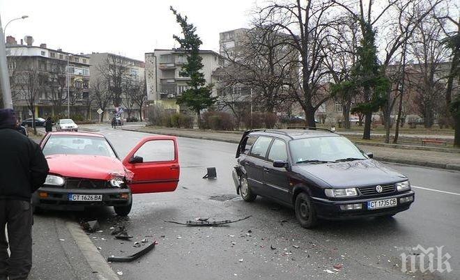 Едната катастрофа е между три леки автомобила, втората е между три леки автомобила и автобус. Няма данни за пострадали, нанесени са материални щети. Двете катастрофи са последователни и са се случили в интервала между 8.30 и 9.00 часа.